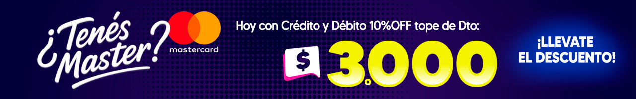 - Descuento: 10% de descuento con todas las tarjetas Mastercard (tope de descuento de $3.000 por usuario).